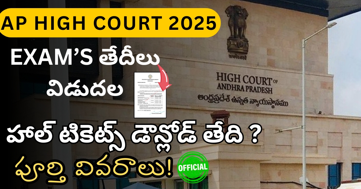 10-07-2025 న ఆంధ్రప్రదేశ్ హైకోర్టు పరీక్ష తేదీలను అధికారికంగా ప్రకటించింది. ఈ పరీక్షలను కంప్యూటర్ ఆధారిత పరీక్ష (CBT) రూపంలో నిర్వహించనున్నారు.