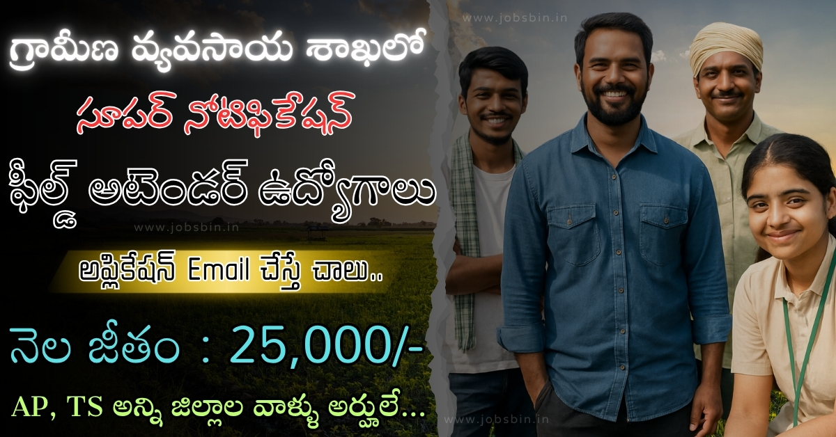 🔥ఇంకా అప్‌డేట్స్ కోసం ఫాలో అవ్వండి – మీకు కావాల్సిన ప్రైవేట్, ప్రభుత్వ ఉద్యోగ సమాచారం మీ తెలుగులో! మరింత సమాచారం కోసం “Subscribe” చేయండి ముఖ్యమైన గమనిక: ఫ్రెండ్స్, మన వెబ్‌సైట్ అయిన Jobs Bin లో ప్రతి రోజు ఉద్యోగ (News) సమాచారాన్ని అందిస్తున్నాము. అందువల్ల, మీరు ప్రతిరోజు మన వెబ్‌సైట్‌ను సందర్శించి, మీ అర్హతలకు అనుగుణంగా ఉన్న ఉద్యోగాలకు అప్లై చేసుకోండి.