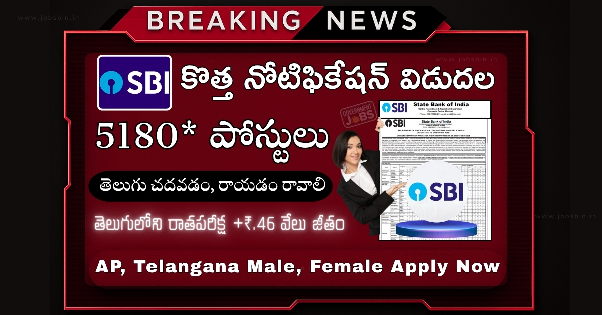 SBI Bank Clerk Jobs 2025 – స్టేట్ బ్యాంక్‌ లో 5180 క్లర్క్ ఉద్యోగాలు ఆన్‌లైన్‌లో దరఖాస్తు చేసుకోండి | SBI Clerk Recruitment 2025 Notification Out 5180 Vacancies – Jobs in తెలుగు