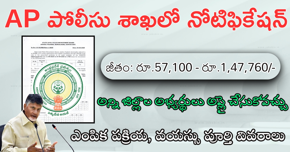 - నియామక సంస్థ: ఆంధ్రప్రదేశ్ స్టేట్ లెవల్ పోలీస్ రిక్రూట్మెంట్ బోర్డు