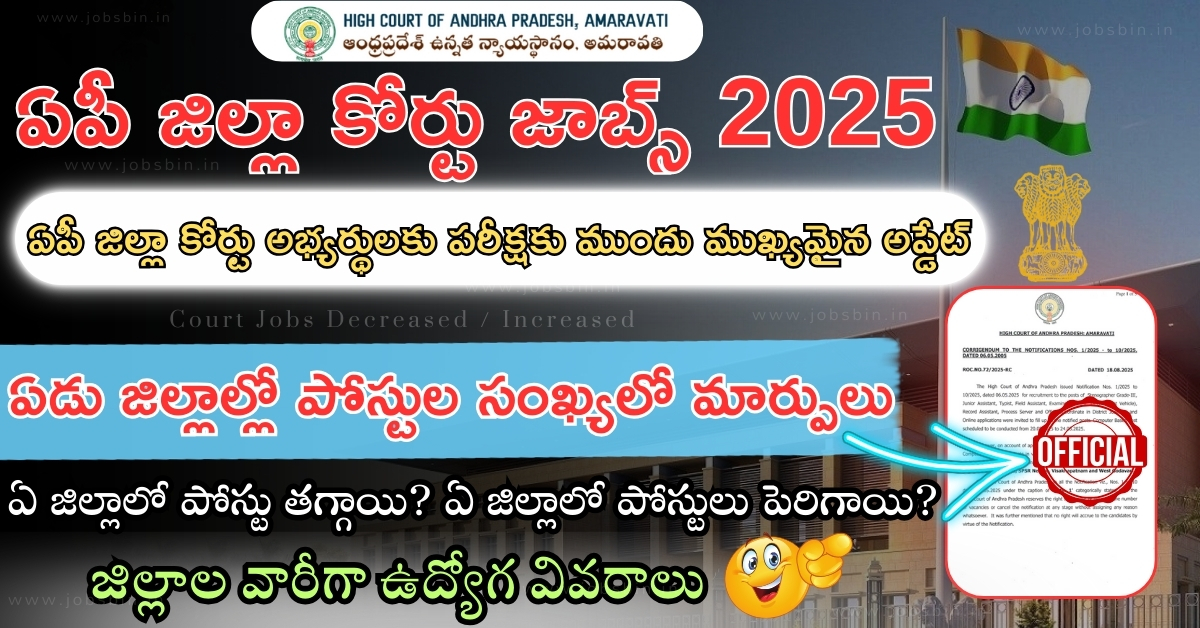 📢 AP District Court ఉద్యోగాలపై కీలక అప్డేట్ – పోస్టుల సంఖ్యలో పెరుగుదల / తగ్గుదల
