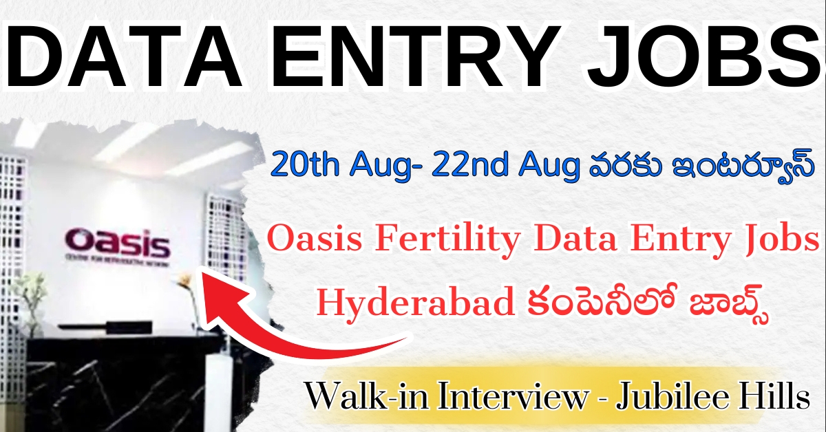 Data Entry Jobs by Oasis Fertility హైదరాబాద్ లోనే Walk-In ఇంటర్వ్యూ – No Exam | ₹3.5 LPA Salary | Jobs in తెలుగు