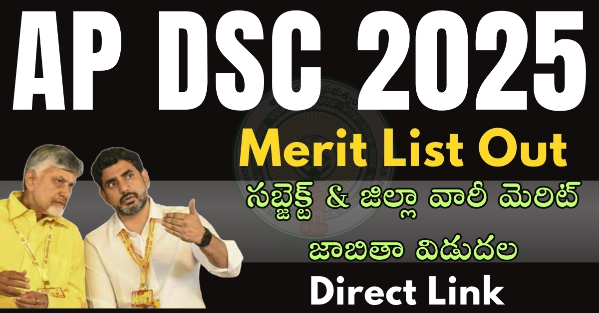AP DSC Merit List 2025 : ఏపీ డీఎస్సీ సబ్జెక్ట్ మరియు జిల్లా వారీ మెరిట్ జాబితా విడుదల చేశారు- @apdsc.apcfss.in