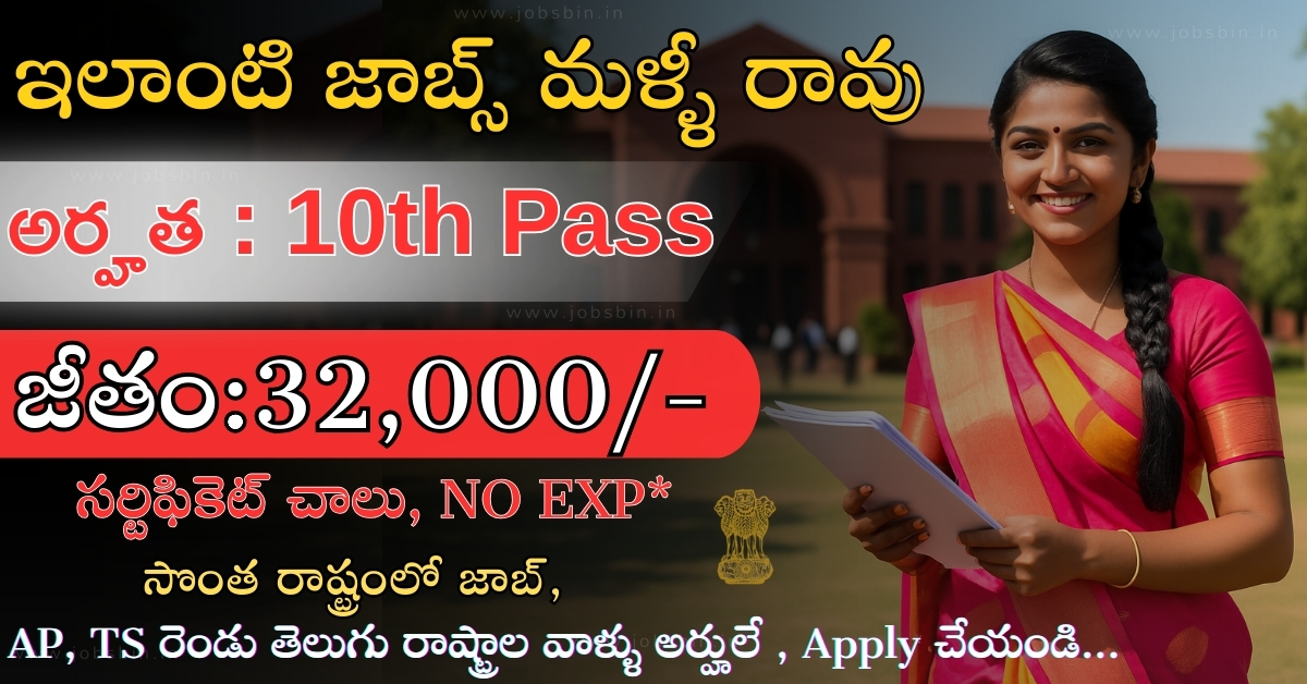 🔥ఇంకా అప్డేట్స్ కోసం ఫాలో అవ్వండి – మీకు కావాల్సిన ప్రైవేట్, ప్రభుత్వ ఉద్యోగ సమాచారం మీ తెలుగులో! మరింత సమాచారం కోసం “Subscribe” చేయండి ముఖ్యమైన గమనిక: ఫ్రెండ్స్, మన వెబ్సైట్ అయిన Jobs Bin లో ప్రతి రోజు ఉద్యోగ (News) సమాచారాన్ని అందిస్తున్నాము. అందువల్ల, మీరు ప్రతిరోజు మన వెబ్సైట్ను సందర్శించి, మీ అర్హతలకు అనుగుణంగా ఉన్న ఉద్యోగాలకు అప్లై చేసుకోండి.