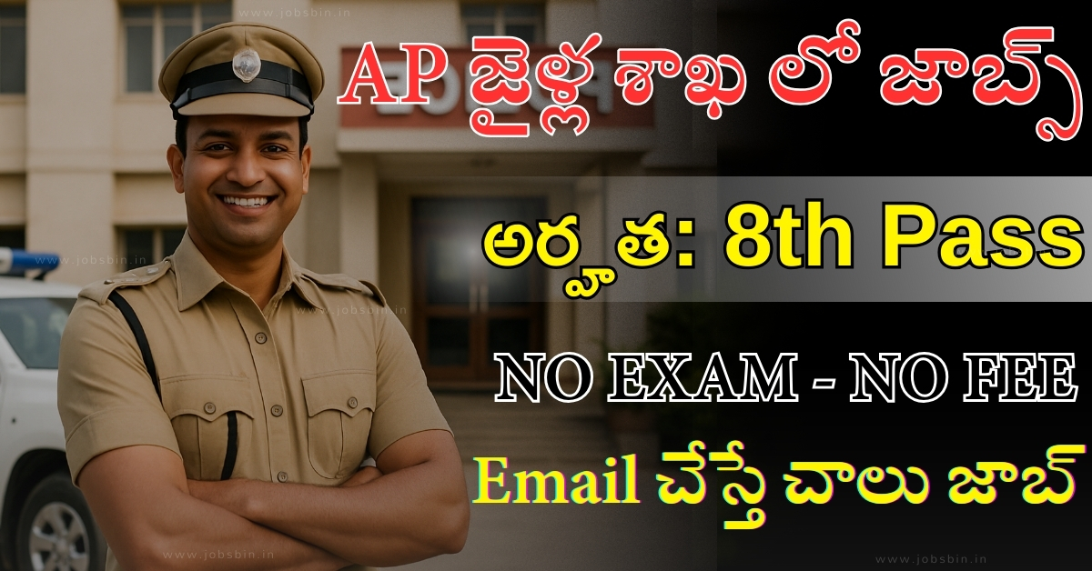 AP Prisons Recruitment 2025 ద్వారా ఆంధ్రప్రదేశ్ జైలు శాఖలో ఉద్యోగం పొందే మంచి అవకాశం. ఎలాంటి పరీక్షలు లేకుండా కేవలం ఇంటర్వ్యూల ద్వారా మాత్రమే ఎంపిక చేస్తుండటం వల్ల అర్హత కలిగిన వారు తప్పకుండా ఈ అవకాశాన్ని వదులుకోకూడదు.