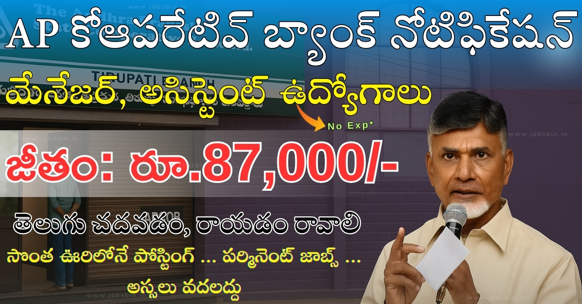 👉 ముఖ్యంగా ఆంధ్రప్రదేశ్ లో ప్రభుత్వ పరిధిలో ఉండే కోఆపరేటివ్ బ్యాంక్ లో ఉద్యోగం అంటే స్థిరమైన కెరీర్ తో పాటు భవిష్యత్తులో మంచి ప్రమోషన్ అవకాశాలు కూడా ఉంటాయి.
