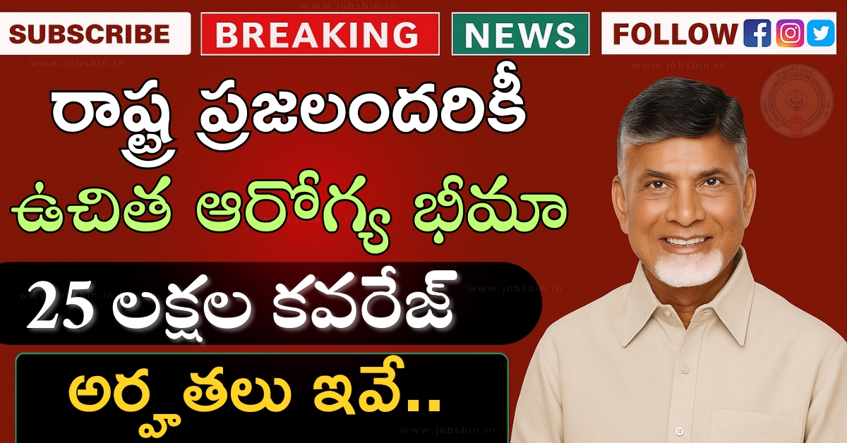 👉 ఈ కొత్త ఆరోగ్య భీమా పథకం మీద మరిన్ని వివరాలు త్వరలో అధికారికంగా విడుదల కానున్నాయి. రాష్ట్ర ప్రభుత్వం ప్రతిష్టాత్మకంగా అమలు చేయనున్న ఈ పథకంపై తాజా అప్డేట్స్ ను మేము మీకు ఎప్పటికప్పుడు అందిస్తూనే ఉంటాం.