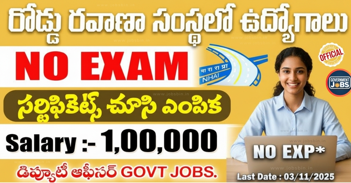 🔥ఇంకా అప్డేట్స్ కోసం ఫాలో అవ్వండి – మీకు కావాల్సిన ప్రైవేట్, ప్రభుత్వ ఉద్యోగ సమాచారం మీ తెలుగులో! మరింత సమాచారం కోసం “Subscribe” చేయండి ముఖ్యమైన గమనిక: ఫ్రెండ్స్, మన వెబ్సైట్ అయిన Jobs Bin లో ప్రతి రోజు ఉద్యోగ (News) సమాచారాన్ని అందిస్తున్నాము. అందువల్ల, మీరు ప్రతిరోజు మన వెబ్సైట్ను సందర్శించి, మీ అర్హతలకు అనుగుణంగా ఉన్న ఉద్యోగాలకు అప్లై చేసుకోండి.