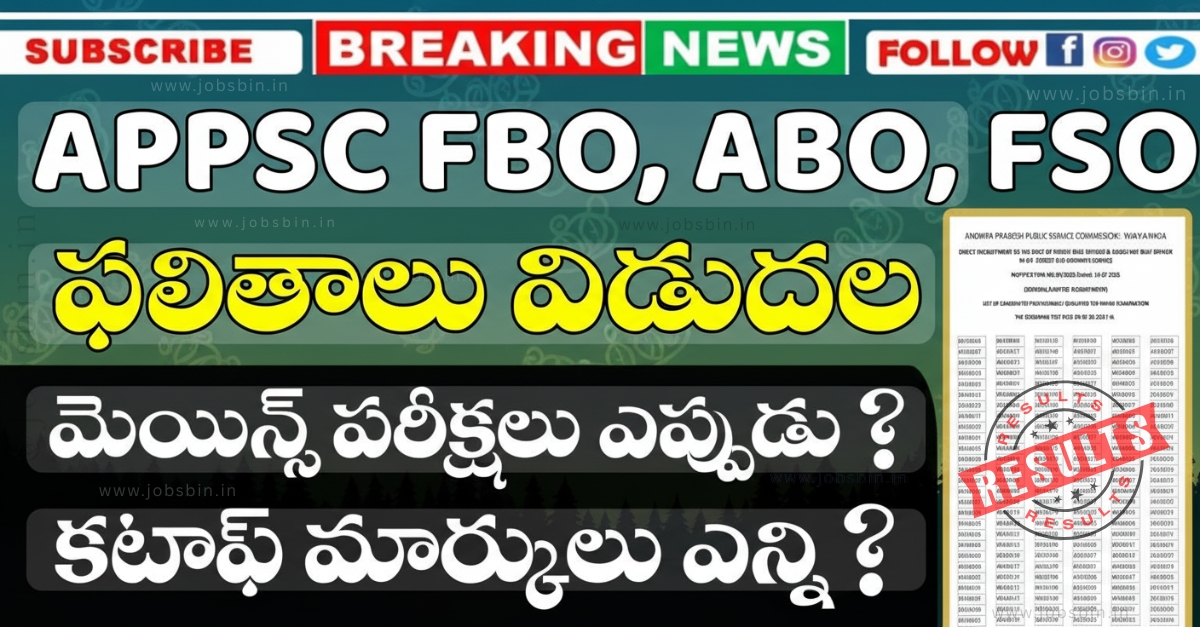 ఆంధ్రప్రదేశ్ పబ్లిక్ సర్వీస్ కమిషన్ (APPSC) రాష్ట్ర అటవీ శాఖలో ఫారెస్ట్ బీట్ ఆఫీసర్ (FBO), అసిస్టెంట్ బీట్ ఆఫీసర్ (ABO) మరియు ఫారెస్ట్ సెక్షన్ ఆఫీసర్ (FSO) పోస్టుల భర్తీ కోసం నిర్వహించిన ప్రిలిమ్స్ పరీక్ష ఫలితాలు అధికారికంగా విడుదల చేసింది. ఈ ఫలితాల ద్వారా మెన్స్ పరీక్షకు అర్హత సాధించిన అభ్యర్థుల రిజిస్టర్డ్ నంబర్లు జాబితా రూపంలో అందుబాటులో ఉంచబడ్డాయి.