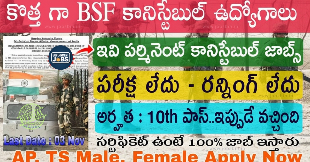 అభ్యర్థులు ఈ తేదీలలోపు BSF అధికారిక వెబ్సైట్ https://rectt.bsf.gov.in ద్వారా అప్లై చేసుకోవాలి.