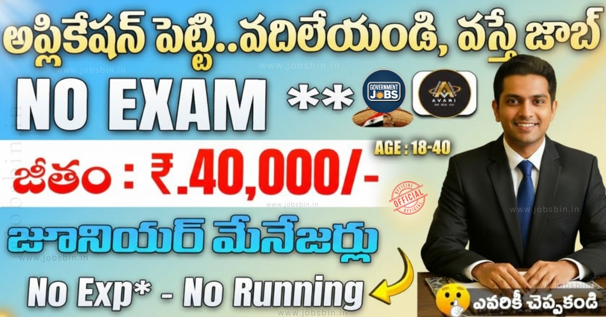 🔥🔥ఇంకా అప్డేట్స్ కోసం ఫాలో అవ్వండి – మీకు కావాల్సిన ప్రైవేట్, ప్రభుత్వ ఉద్యోగ సమాచారం మీ తెలుగులో! మరింత సమాచారం కోసం “Subscribe” చేయండి ముఖ్యమైన గమనిక: ఫ్రెండ్స్, మన వెబ్సైట్ అయిన Jobs Bin లో ప్రతి రోజు ఉద్యోగ (News) సమాచారాన్ని అందిస్తున్నాము. అందువల్ల, మీరు ప్రతిరోజు మన వెబ్సైట్ను సందర్శించి, మీ అర్హతలకు అనుగుణంగా ఉన్న ఉద్యోగాలకు అప్లై చేసుకోండి.