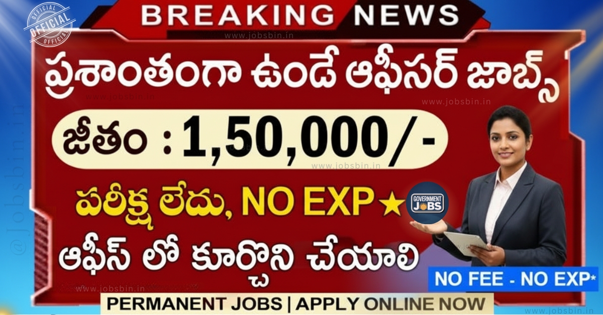 🔥ఇంకా అప్డేట్స్ కోసం ఫాలో అవ్వండి – మీకు కావాల్సిన ప్రైవేట్, ప్రభుత్వ ఉద్యోగ సమాచారం మీ తెలుగులో! మరింత సమాచారం కోసం “Subscribe” చేయండి ముఖ్యమైన గమనిక: ఫ్రెండ్స్, మన వెబ్సైట్ అయిన Jobs Bin లో ప్రతి రోజు ఉద్యోగ (News) సమాచారాన్ని అందిస్తున్నాము. అందువల్ల, మీరు ప్రతిరోజు మన వెబ్సైట్ను సందర్శించి, మీ అర్హతలకు అనుగుణంగా ఉన్న ఉద్యోగాలకు అప్లై చేసుకోండి.