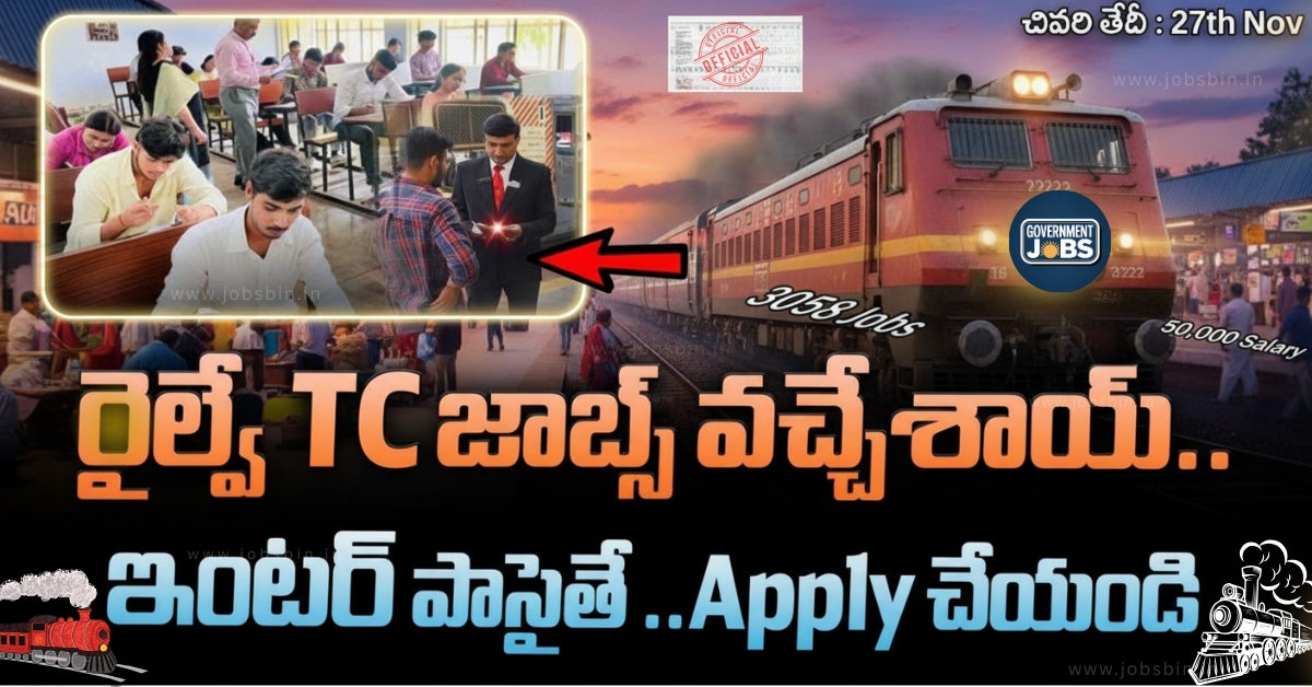 - 🧾 కమర్షియల్ కమ్ టికెట్ క్లర్క్: 12వ తరగతి పాస్, 50% మార్కులు తప్పనిసరి