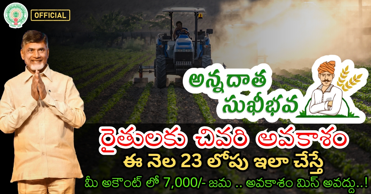 అన్నదాత సుఖీభవ పథకం: రైతులకు చివరి అవకాశం! జూలై 23 లోపు ఈ చర్యలను తీసుకోండి, మీ అకౌంట్లో డబ్బులు జమ అవుతాయి.