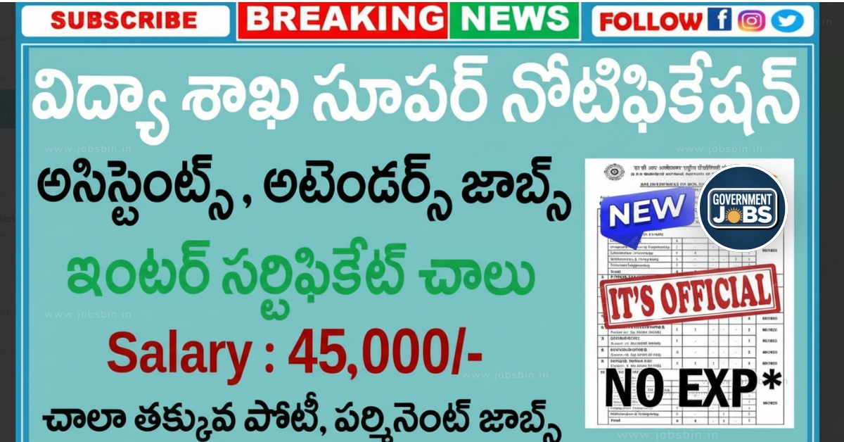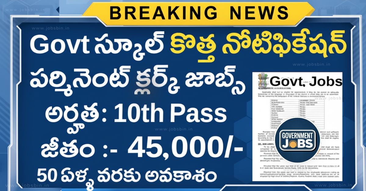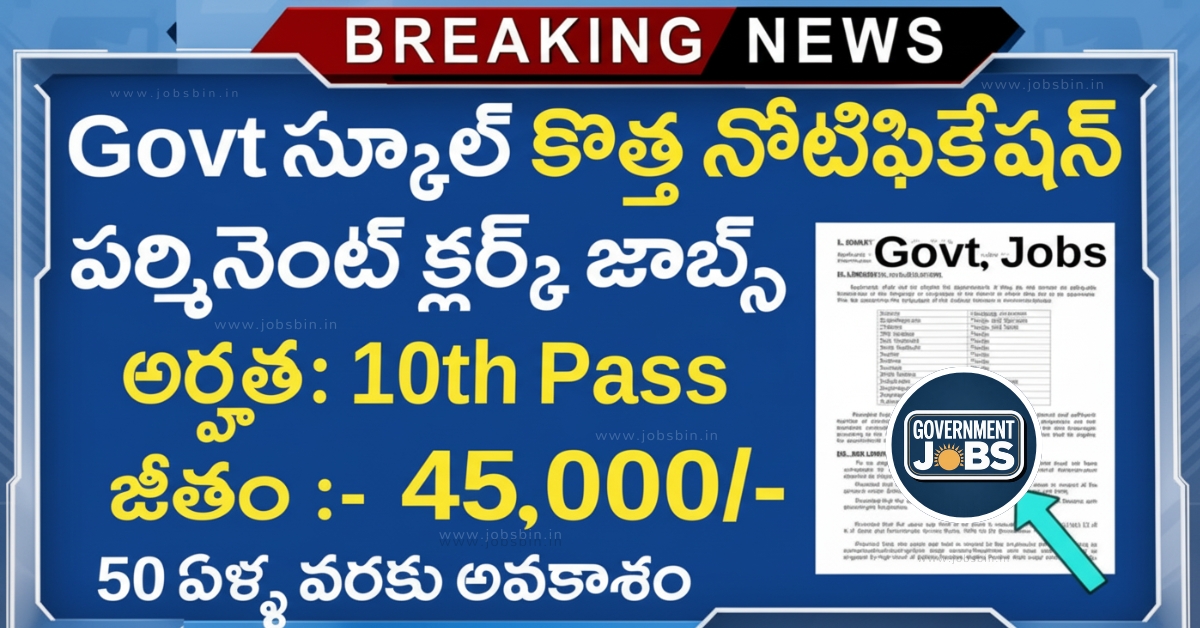 10th అర్హతతో Govt లో బంపర్ జాబ్స్ | పర్మినెంట్ క్లర్క్ జాబ్స్ | జీతం : 45,000/- | Govt School Jobs In Telugu