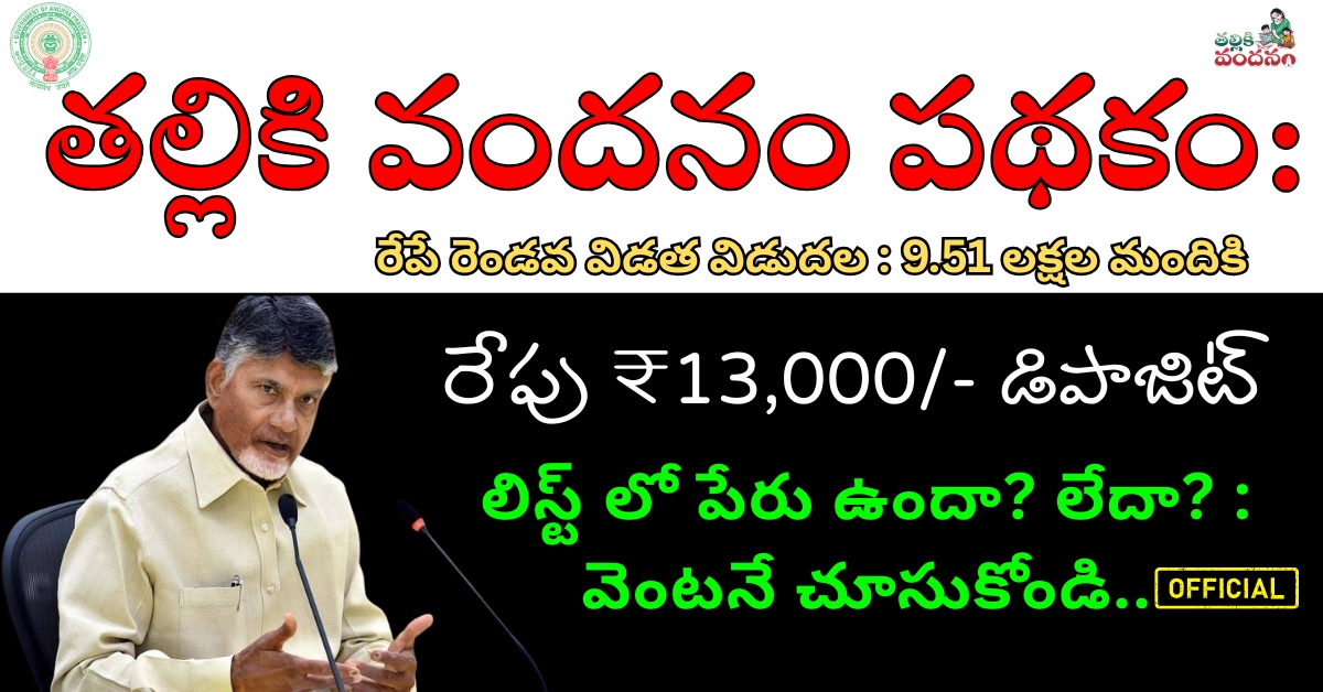 Good News :తల్లికి వందనం పథకానికి సంబంధించి వార్త: రేపు వీరి ఖాతాల్లో ₹13,000 రూపాయలు జమ కానున్నాయి – అర్హుల జాబితాలో మీ పేరు Check చూసుకోండి