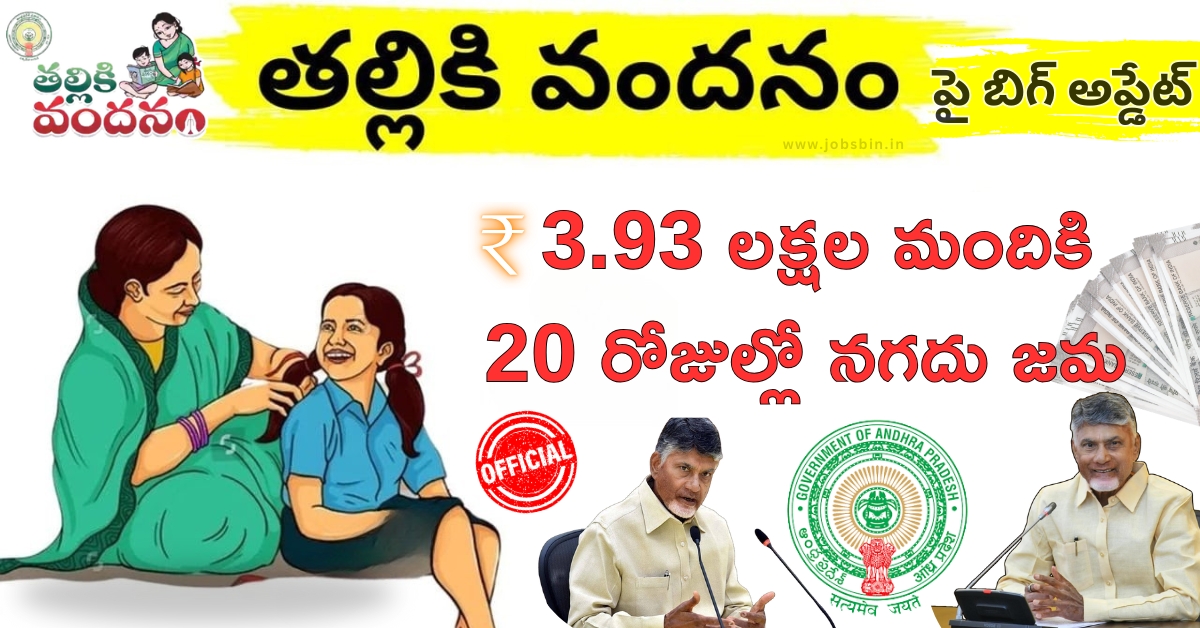 తల్లికి వందనం పై బిగ్ అప్డేట్..ఈ పథకం ద్వారా , 20 రోజుల్లో 3.93 లక్షల మందికి నగదు జమ
